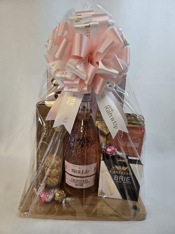 - Presented on a wood cheeseboard & complemented with a handmade bow