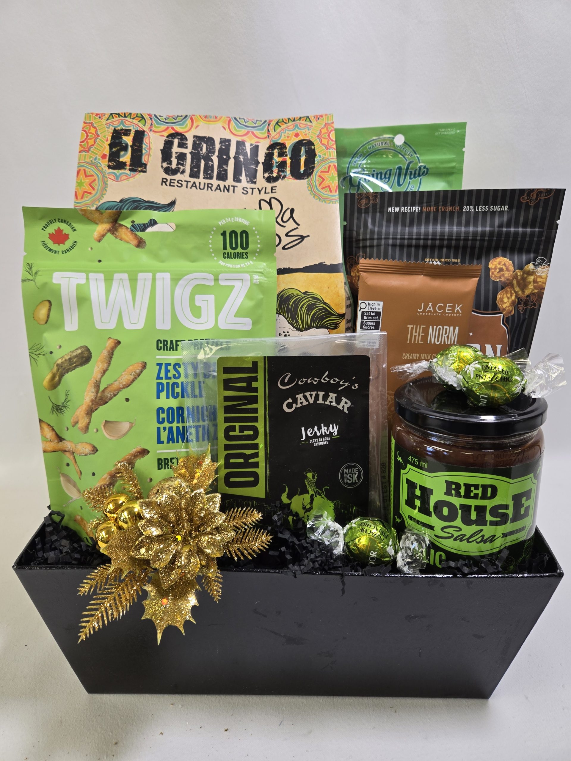 Experience the best of Western Canada with our Canadian West Snack Basket, featuring locally made favorites from Alberta, British Columbia, and Saskatchewan. Packed with premium snacks like artisan jerky, zesty pretzels, gourmet salsa, and handcrafted chocolate, this bold and flavorful gift basket is perfect for sharing regional pride and great taste this holiday season.