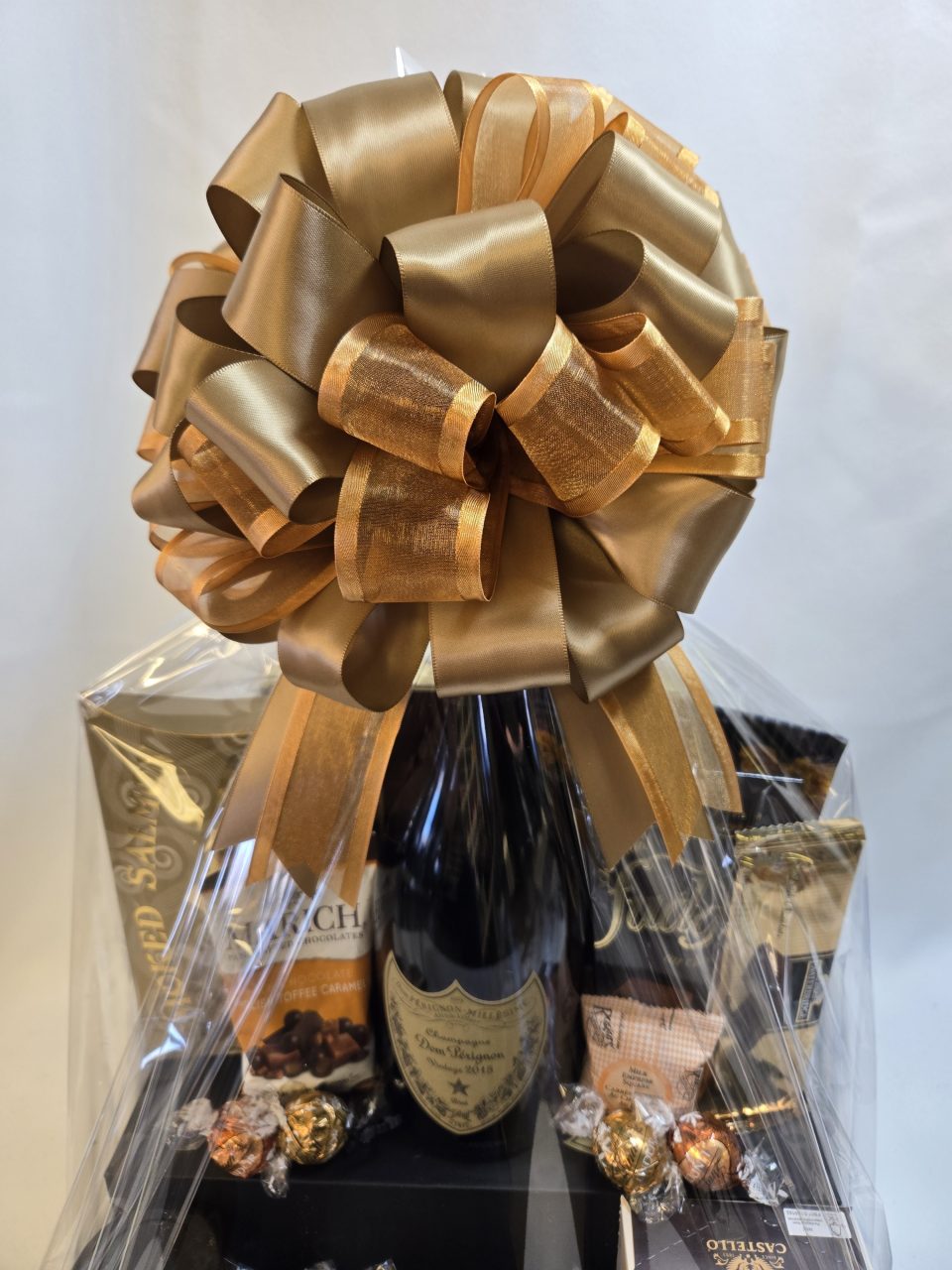 - Presented on a wood tray, wrapped in cellophane and complemented with a handmade bow