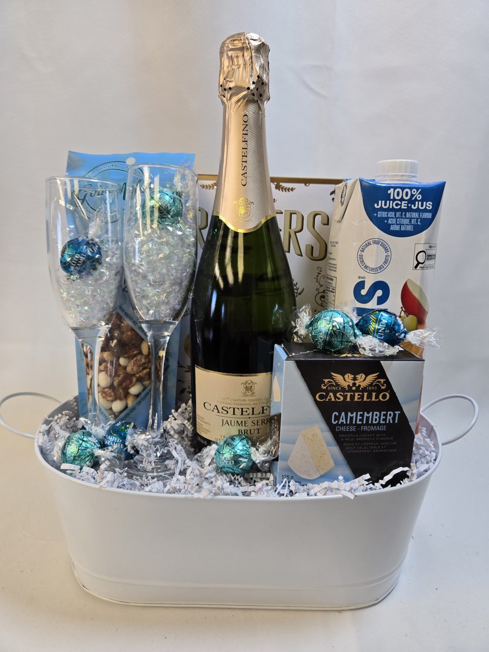 This Mimosa gift basket is the perfect gift for birthdays, bridesmaids, get away weekends, Mother’s day and so many more celebrations.