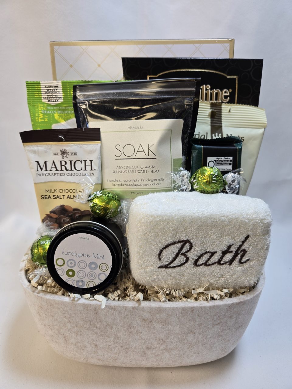 This is a great feel good gift basket and the bath products are made right here in Edmonton