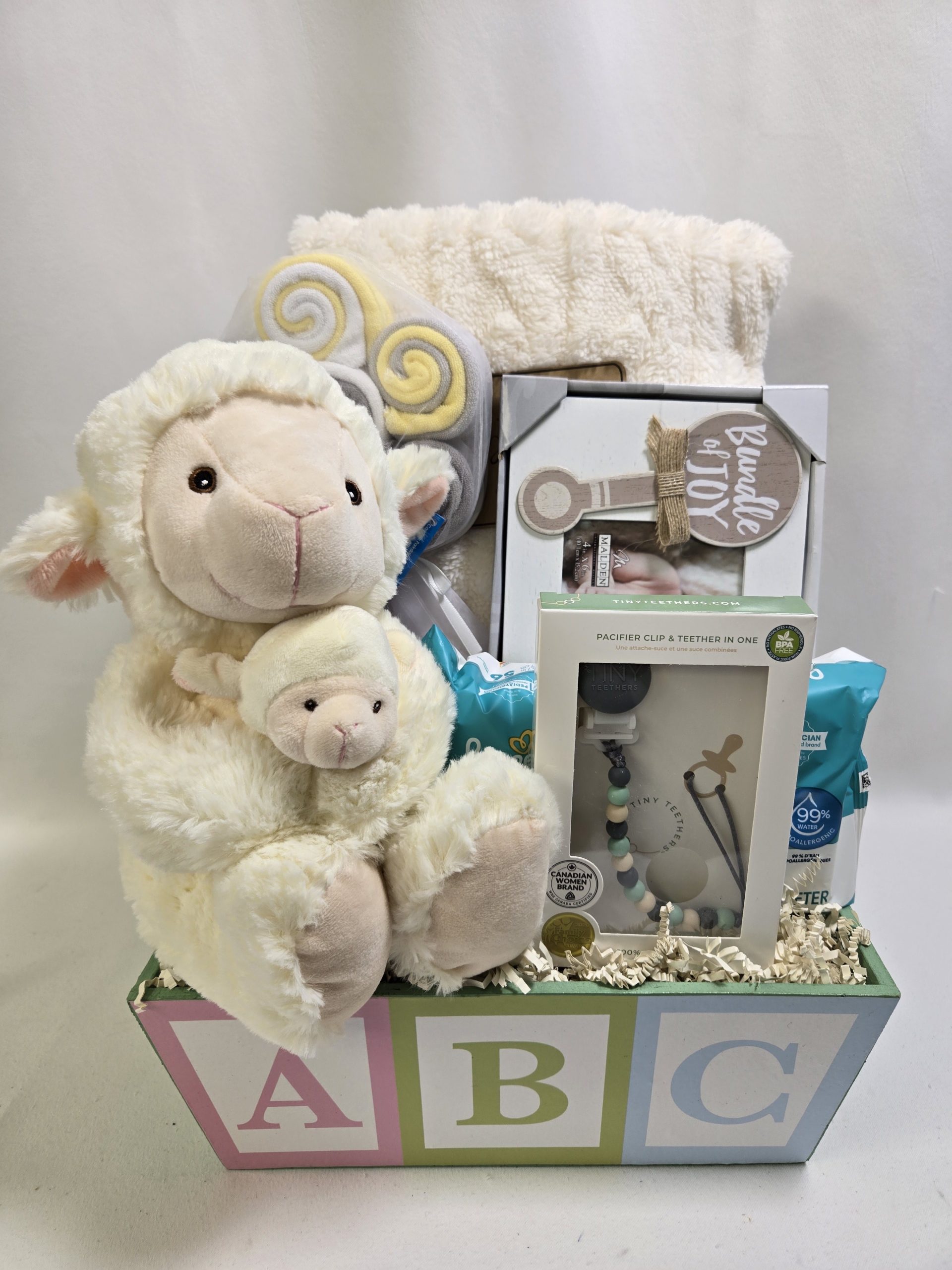 - Presented in a reusable ABC wood tray, wrapped with cellophane and complemented with a handmade bow